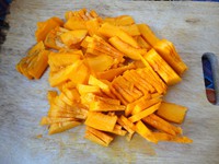 家里有南瓜,被我丢弃在角落里,总是忘了将它吃掉。终有一天,拿出来,洗掉尘土,切开,虽然金黄金黄的,可是根据刀感我觉得这个南瓜并不好吃,果不其然,虽然领导嚷着要吃熬南瓜,可是做好后,却也不怎筷。此时,我不得不为自己的明智之举而感慨,好在只熬了半个,另外的半个就可以做南瓜馒头了。 面发好后,看到金黄的膨胀得很高的面团,我一直有了做个造型的冲动。想了半天,还是做绣球吧。绣球经常用于做面包,我做个馒头试试。结果证明还是很成功的。