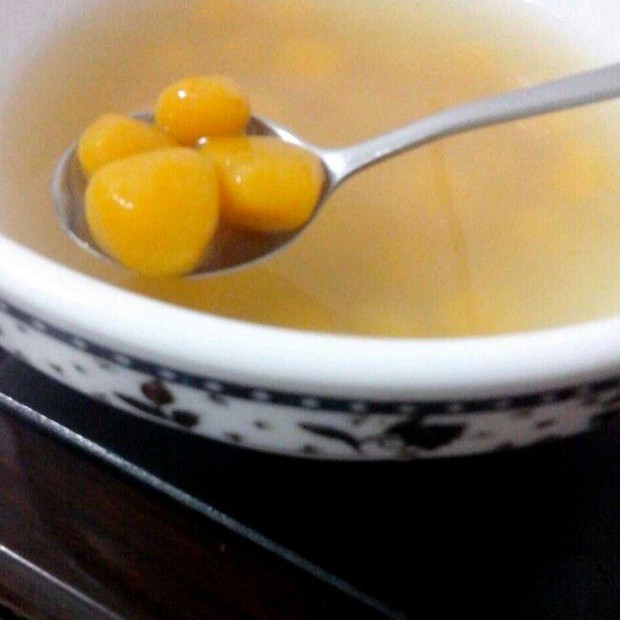 做完小圆子后,晾一会。把水煮开,下小圆子。等到小圆子浮起即可。可以适量放些糖。