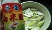 1. 丝瓜去皮切滚刀块 加入水漫过丝瓜, 加点醋,防氧化