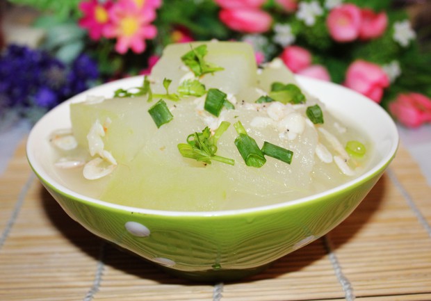 简单的小菜,却是很滋味鲜甜!不仅消暑,还补钙哦,呵呵!再说,现在冬瓜便宜,多吃这应季菜有益健康哦,还利尿,要减肥的MM更不能错过!