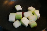 炒锅倒油,油热了之后放入葱花呛锅,炒出香味后放入冬瓜块翻炒。