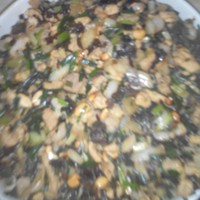 烧开锅把香菇和五花肉放进锅里炒香后放荞头,花生等佐料全炒香。