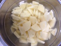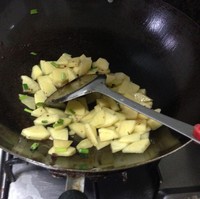 5. 土豆下锅,只用刚才剩下的油,不用再加油了