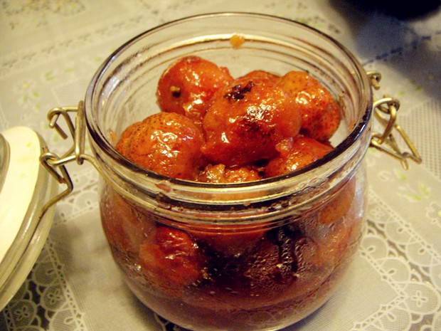 煮至冰糖汁收浓包裹住山楂球球,关火晾凉,装瓶~