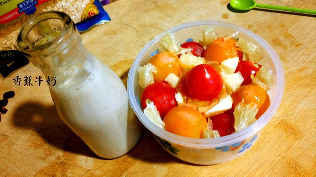 话说以前总会拿酸奶拌水果吃~但没想到牛奶拌也味道超棒!!!最后在激动的吼一句:香蕉牛奶真的炒鸡棒!!!φ(≧ω≦*)?