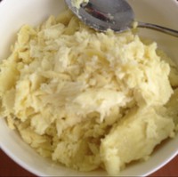 用勺子将薯肉压成泥