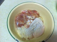 调制秘制照烧汁:老抽一勺,料酒一勺,生抽两勺,蜂蜜一勺