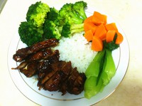 照烧(照り焼き,てりやき,Teriyaki),知名日本菜肴及烹饪方法。通常是指于烧烤肉品过程中,外层涂抹大量酱油,糖水,大蒜,姜与清酒(或味醂)。传至欧美国家后,该烹饪方法经改良,口味较淡,而中国大陆,中国香港,中国台湾与韩国的照烧肉品则口味较重。所用的照烧汁可称作烧肉酱或照烧酱。这道菜也称得上是技术含量很少的菜,没啥烹饪经验的人也可以制作出一道完美的照烧鸡肉饭,可算是零基础、零失败!