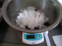 到这里,我们可以称枣子了,一百克的枣子去核煮后吸水就不少了。我们只要称出130克左右。