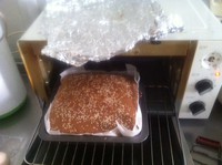 约半个小时,可以试情况看是否要盖锡纸防止上色过深。此时蛋糕膨胀的很高。