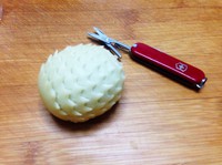 准备小刺猬的眼睛、嘴和小剪刀。我用的花椒粒和花椒子做眼睛和嘴,大家可随心意选择啦^_^