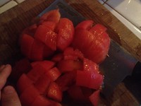 丸子全部下入锅内,西红柿切碎入锅同煮。