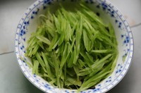 用盐,味精,糖提前拌好莴笋丝,用手抓拌就可以了,拌匀了以后静置5分钟,出水后将水倒掉