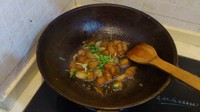 加入盐和少量生抽,能上色即可,翻匀以后盖盖儿中火焖几分钟。(注意别粘锅,如果实在油少了可加一点水)