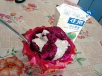 红色火龙果更甜,白色火龙果跟椰汁的颜色搭配更和谐。总之二者味道还蛮出乎意料地相得益彰,冰镇之后口感更佳。