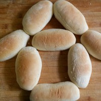 面包机运行至剩两小时,将面团取出整形。我分了8份,滚圆松弛。