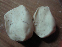 混合的湿料慢慢倒入面粉中,成絮状后开始揉至成团