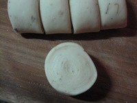 取出面团奋力揉搓排气,一直到面团细腻,对切后组织也细腻
