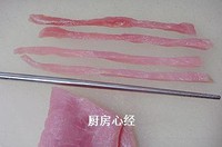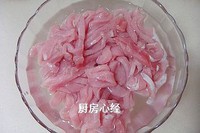 将切好的肉条,反复用清水洗几次,洗去粘液