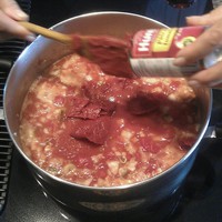 将菜椒放进锅里,然后如果喜欢肉,可以放肉末进去。喜欢其他味道的,可以放别的比如说lentils。