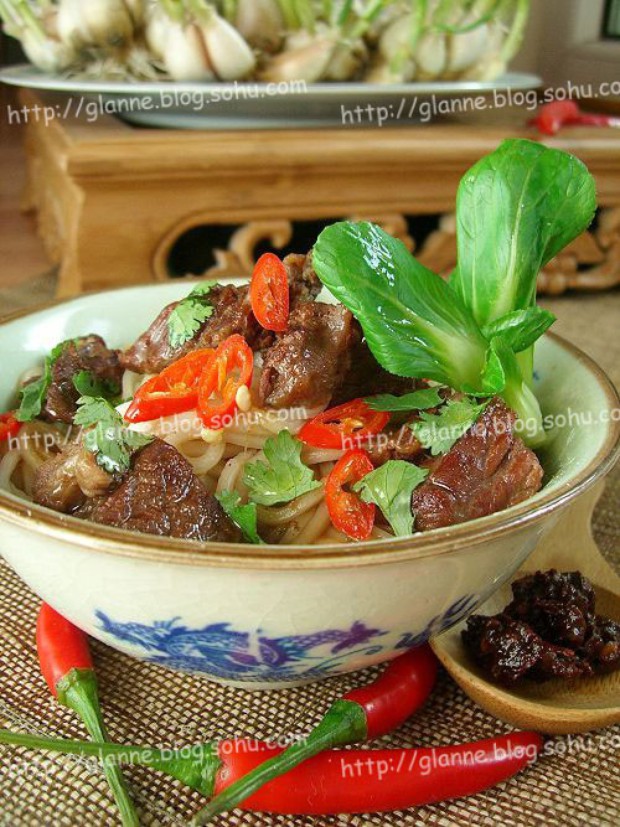 5. 最后盛入一些炖好的牛肉块,加入汤汁拌匀