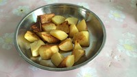 3. 在锅里倒油,要稍多一些,把土豆炸透。大约成这样。把土豆捞上来,把油沥干。