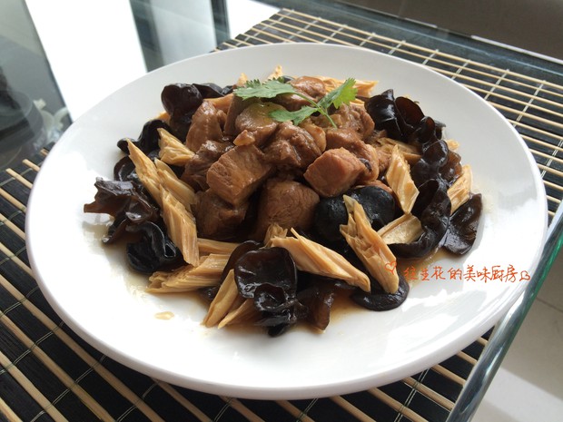 吃的时候,汤汁滗出,扣在盘中。汤汁加些喜欢的配菜勾芡,浇在黄焖肉上,即可。