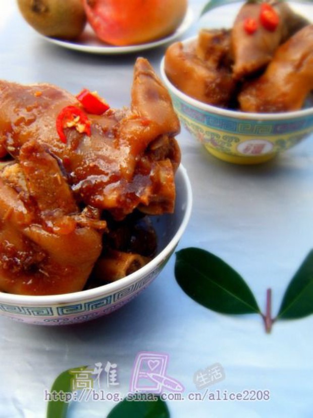 猪脚含有丰富的胶原蛋白质,脂肪含量也比肥肉低,并且不含胆固醇,适合所有人,更是老人、妇女、失血者的食疗佳品。猪脚一般用于炖汤、红烧、卤等等,沙茶酱焖猪脚,只是添加了一点沙茶酱,味道马上变得不一样,使本来香糯不腻的猪脚添加了另外一番风味!沙茶酱是盛行福建、广东等地的一种混合型调味品,其色泽淡褐,呈糊酱状,具有大蒜、洋葱、花生米等特殊的复合香味、虾米和生抽的复合鲜咸味,以及轻微的甜、辣味。