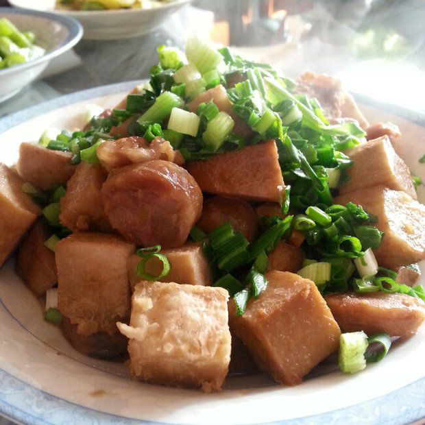 芋头粉粉的,带着香肠的香味。用了酱油,口感上比一般的葱油芋艿多了一些层次。