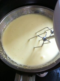 座入热水锅中低档打发,这时蛋糊颜色会慢慢变淡