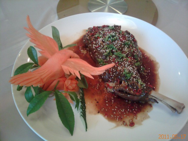 此菜是赣菜制作,味型香辣、浓厚,作品大气,别有独特的味道。
