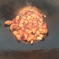 五花肉切小块加入生抽、老抽、糖腌制备用。