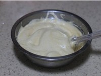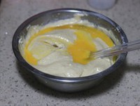 材料A中,黄糖粉分三次加入蛋白中,将蛋白打发成硬性发泡