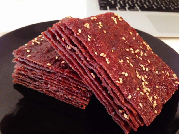 喜欢吃蜜汁黑椒肉干,试验了各种方子,不同的糖和酱油的比例,不同的厚度和火候,不同的烤制和翻面时间,最后总结出来的就是这一个:)