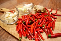 这里用的是小的红辣椒,因为自己喜欢狠辣。不能吃辣的可以讲红辣椒换成大的红椒就可以,也很香啊~
