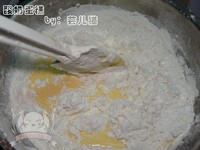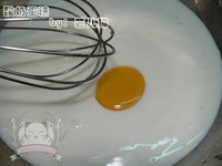 均匀后,在加入另一个蛋黄,一定要加完一个再加一个哦,要每次加完都搅拌均匀!