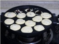 小丸子机的每窝里刷薄油,每窝舀入半窝的面糊