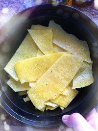 柚子皮用盐水泡一个小时以后,切丝,再用盐水搓,拧干水,反复几遍