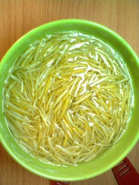 将柚子皮削下薄薄一层,然后切丝,大概2-3厘米长,1毫米细