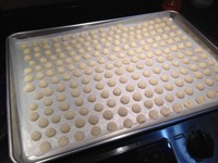 因为给宝宝吃就不要挤很大,小小颗很适合宝宝,所以就这个量,你可能也会挤两盘以上,我是两盘一起烤的,低温烘烤用了50分钟,中间有上下倒换一下烤盘,原则是不上色好看!奉献我家小嫩美美的享受溶豆照一张!