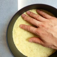将5倒入准备好的模具中,用手指按压平整、紧实。
