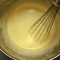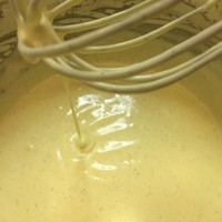 面糊搅拌均匀成液体状,要求搅拌器提起面糊会一滴一滴的淌,但搅拌器上仍会残留面糊。