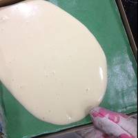 再平铺一层较薄原色蛋糕面糊。烤15至20分钟。火力我用上150下130。主要看个自烤箱,和平时烤蛋糕卷的温度和时间。