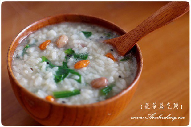 菠菜&枸杞&黑芝麻&红皮花生。简单又温暖的养生粥。