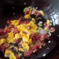 1. 黄瓜牛肉虾仁切丁,鸡蛋打散