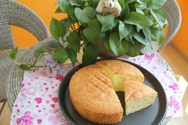 记得小时候奶奶过生日,姑姑都会买大大的蛋糕回来。那时候最幸福的就是我们这些小孩子,望着奶油蛋糕淌哈喇子,调皮的弟弟还会趁人不注意的时候用手指偷偷戳一下奶油吮着指头,那个幸福啊,而我最喜欢的是香喷喷的蛋糕底,黄灿灿的蛋糕甚是诱人。。。。。这个全蛋海绵蛋糕就很有小时候的味道,这么多年了还是很喜欢吃。