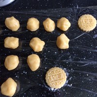 分成大概15克左右一个的面团,可以用50克或者75克的月饼膜具