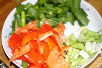 彩椒切片、青蒜切段备用