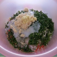 倒进切好的萝卜丝和葱当中
