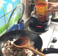 放入生抽,大量,我妈教我浇了好几圈下去,味道全靠它了。